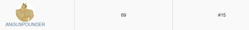 And congrats to the Angus Pounder for #15 with 69 points... LMFAO0O0O0O0