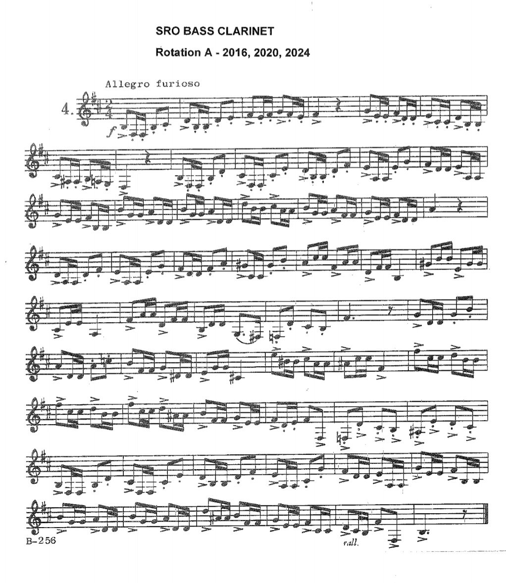 Here is audition music I recently got for Bass Clarinet, I have to perform this in 22 days. Along with a bunch of other things like scales... and sightreading...