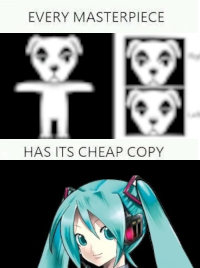For some reason, I've read that as "master race" and I've been thinking that that was what it said for like a day straight. I was so confused when I first saw this, thinking, what does some dog have to do with the master race and why does it involve Miku? I just viewed this post again today and noticed that it's actually "masterpiece". LMAO.