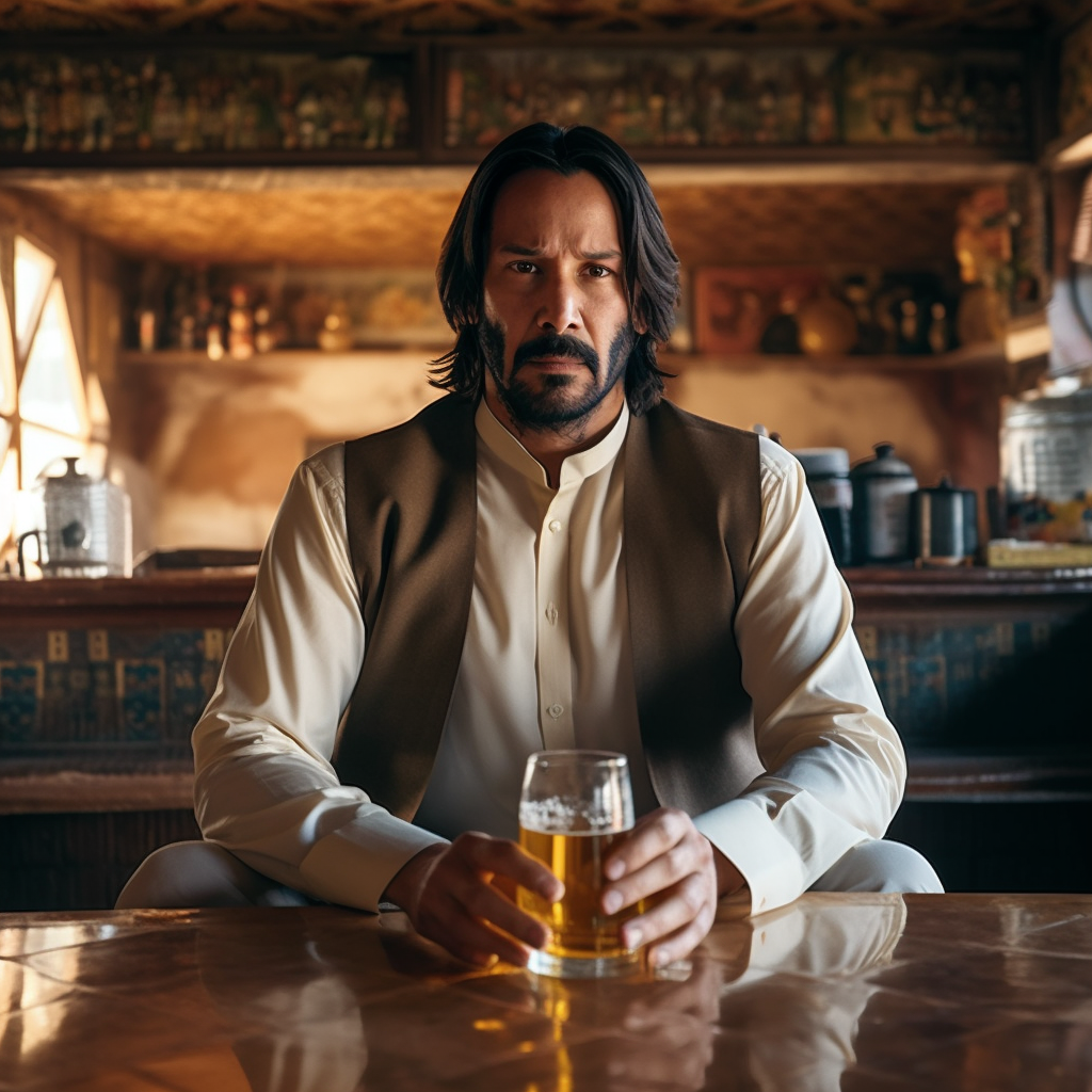 John Wick taking a dump while drinking tea.