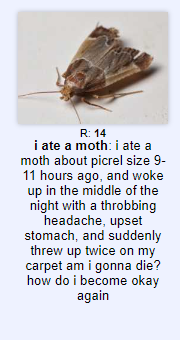 Eat a frog, frog will eat the moth, poop out frog. Problem solved.