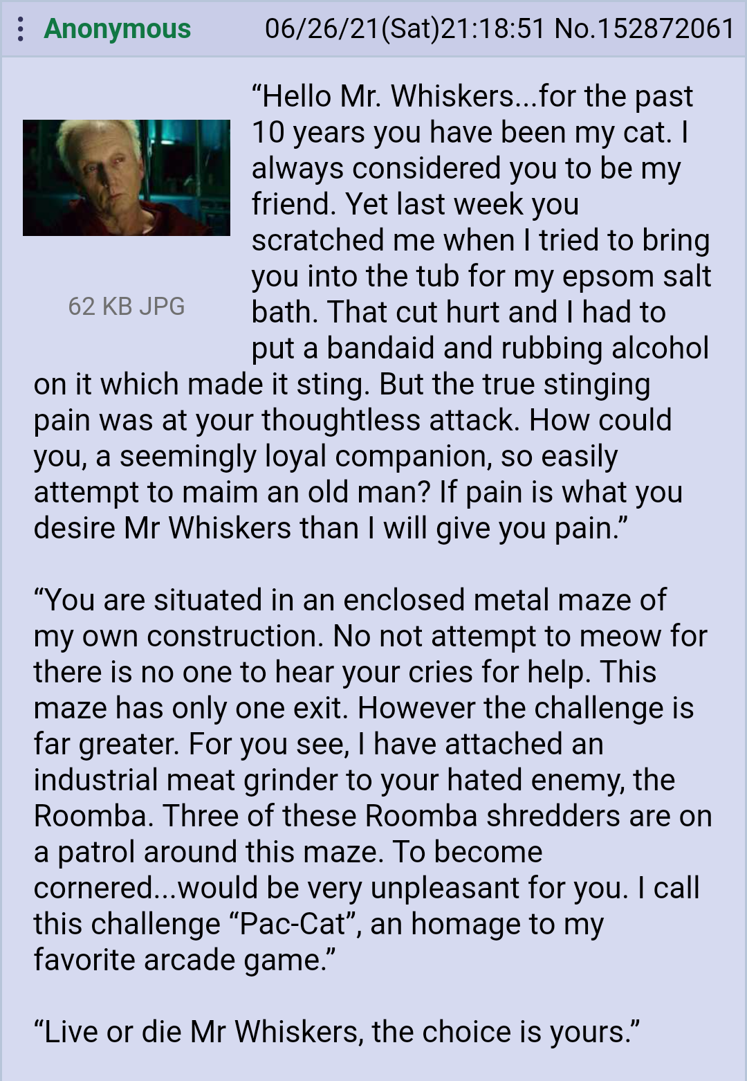 Mr. Whiskers' trial