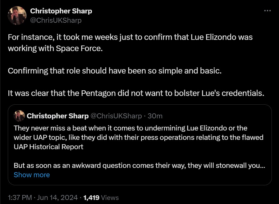They never miss a beat when it comes to undermining Lue Elizondo or the wider UAP topic, like they did with their press operations relating to the flawed UAP Historical Report