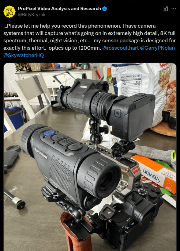 Skywatcher receives offer from X user to record UAPs for them using a high-tech camera setup